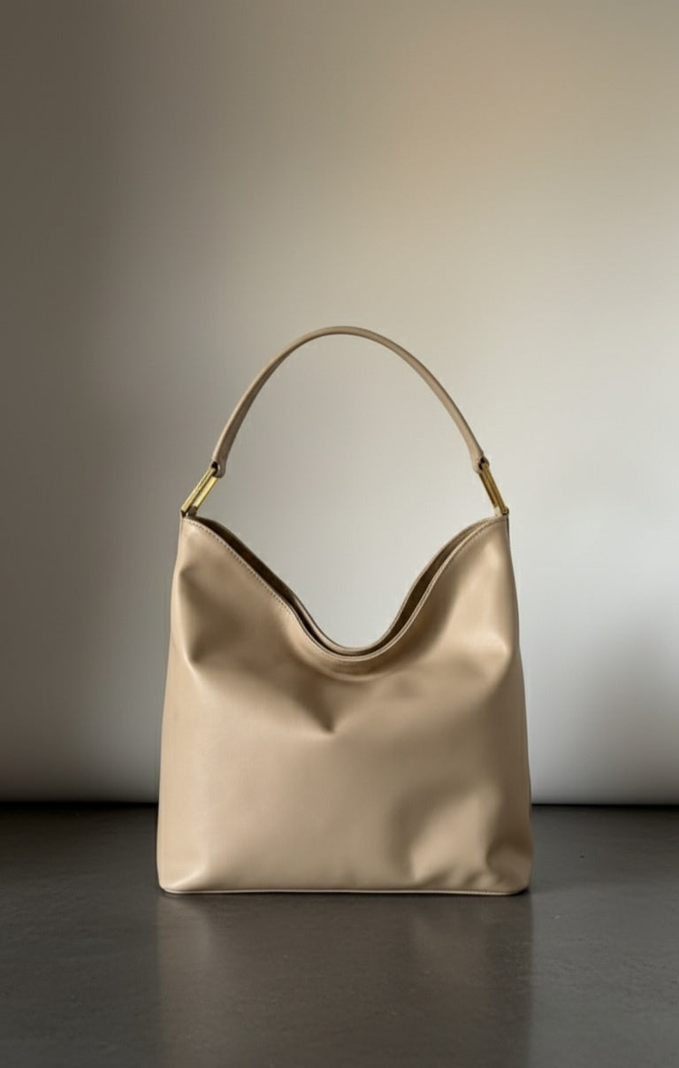La borsa DayIn incarna un minimalismo raffinato , un perfetto equilibrio tra linee rilassate e sobria raffinatezza. Realizzata a mano in pregiata nappa , offre una texture irresistibilmente liscia e un drappeggio naturale che si ammorbidisce a ogni tocco.